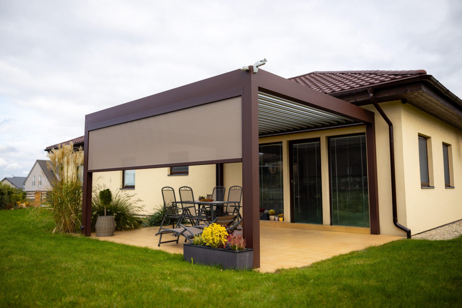 Boční stínění pergol, bioklimatické pergoly a pergoly se skleněnou střechou zajistí pohodlný, stylový a funkční venkovní prostor za každého počasí.