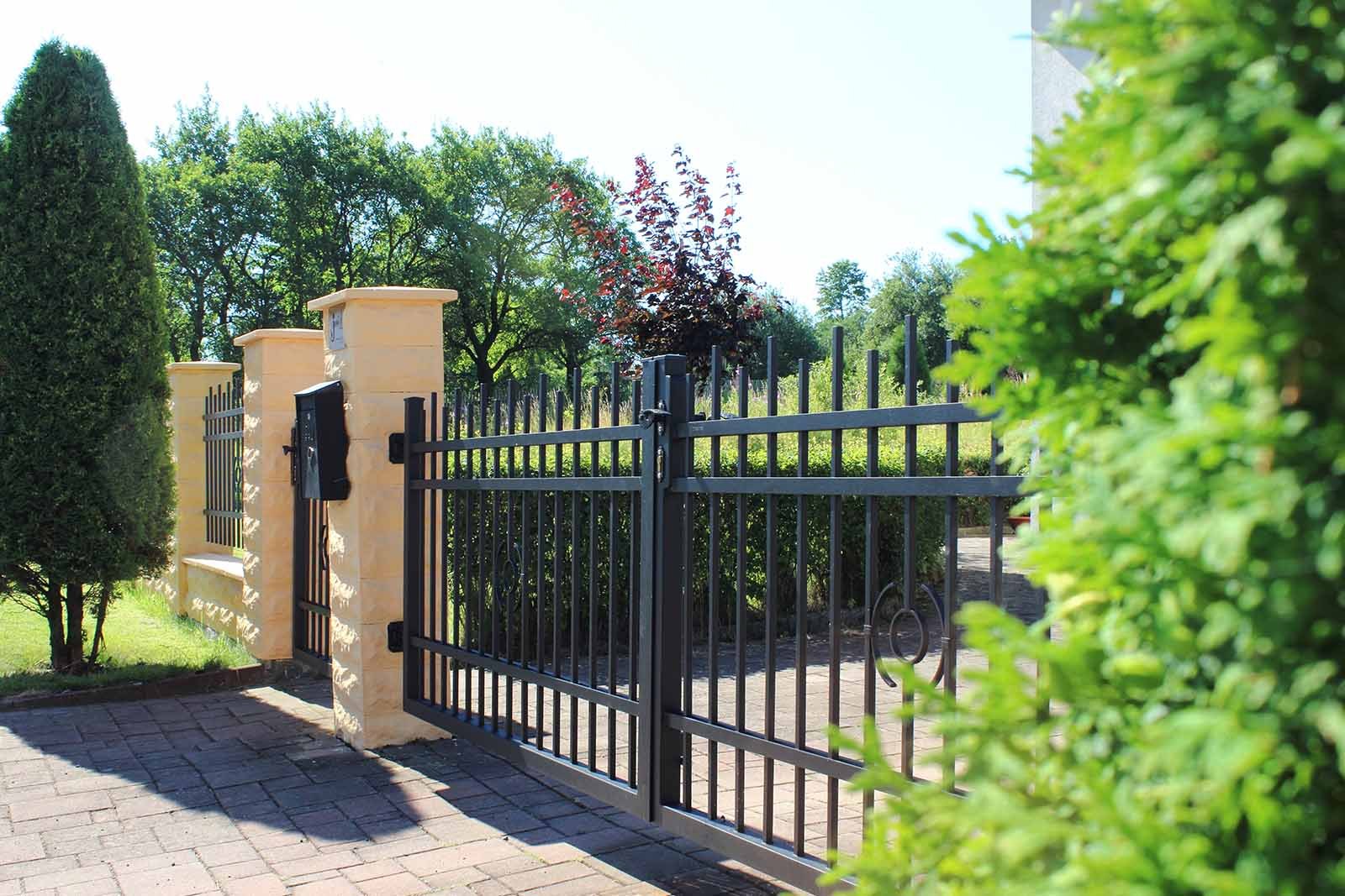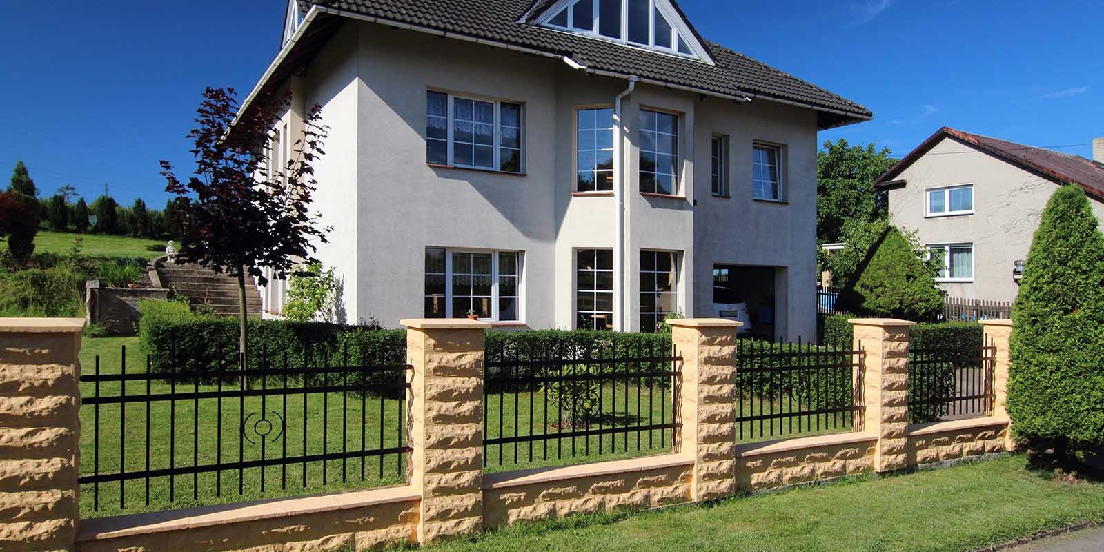 Dvoukřídlá brána a plotové dílce Verona montované do štípaného betonu